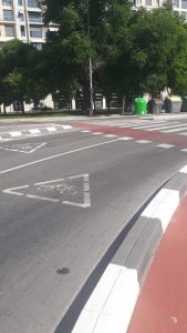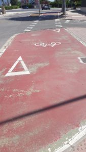 - MACIZADO DE LA SUPERFICIE VERDE DE CARRIL BICI EN ROJO QUE ES EL COLOR DE LA MAYORÍA DE LOS CARRILES BICI EXISTENTES EN EL TÉRMINO MUNICIPAL DE CASTELLÓ
