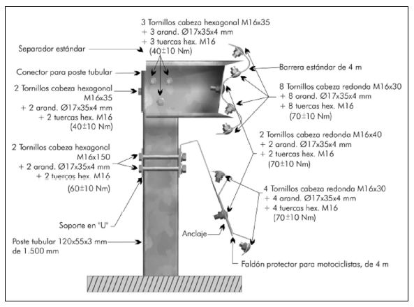 - Suministro e colocación de abatimiento de barrera de seguridad de 4 metros.